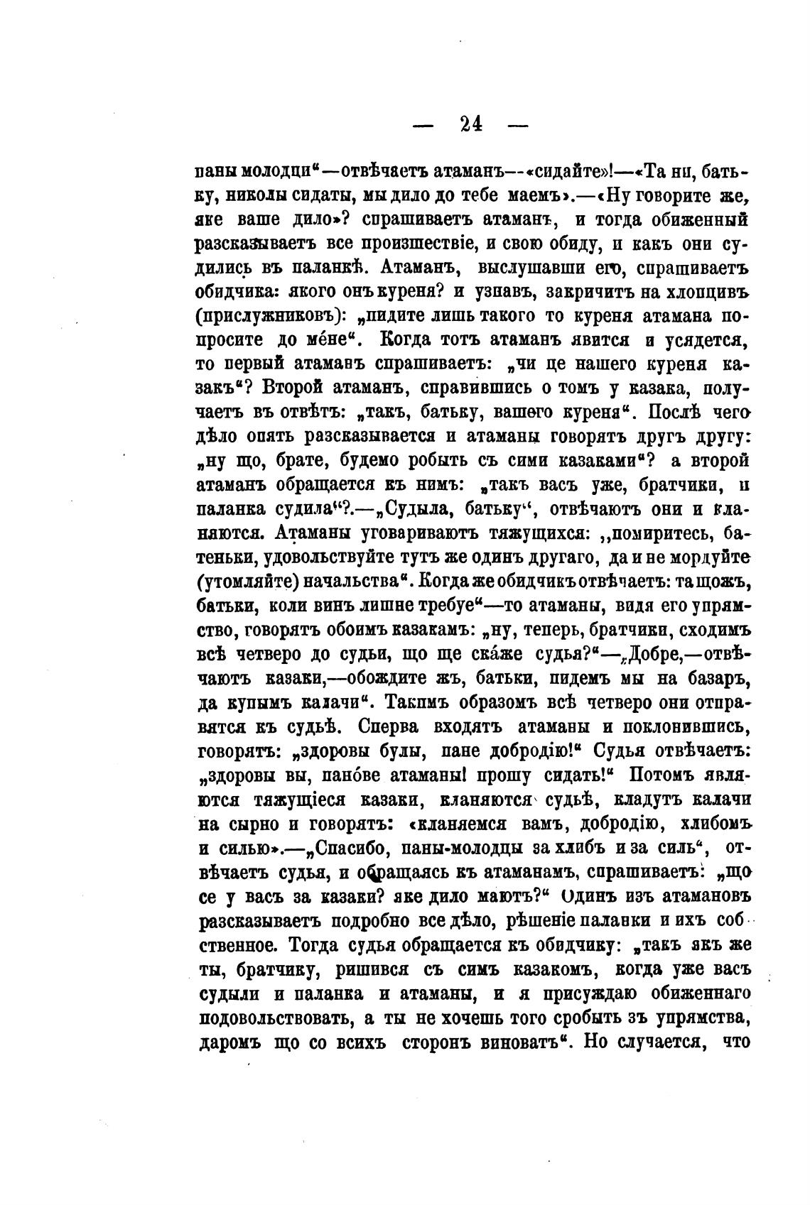 вВчаетъ судья, и офащаясь въ атаманамъ, спрашиваетъ: „що