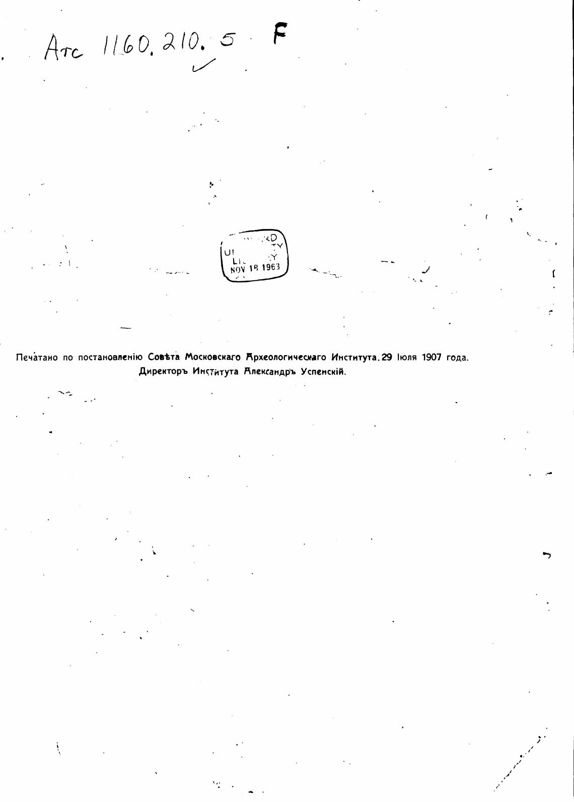 Печатано по постановлее“ю Сов%та Московскаго Нрхеологичеиаго Института Д 1юля года.