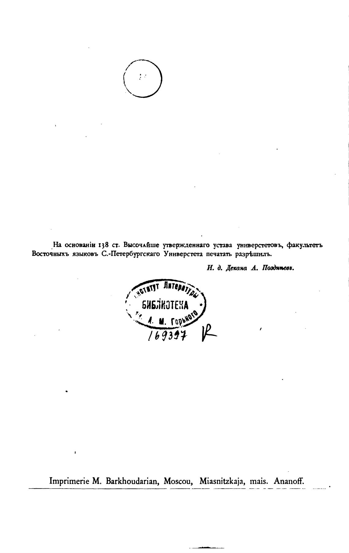 Вхточныхъ языковъ С.-Петербургскаго Универстета печатать разр±шилъ.