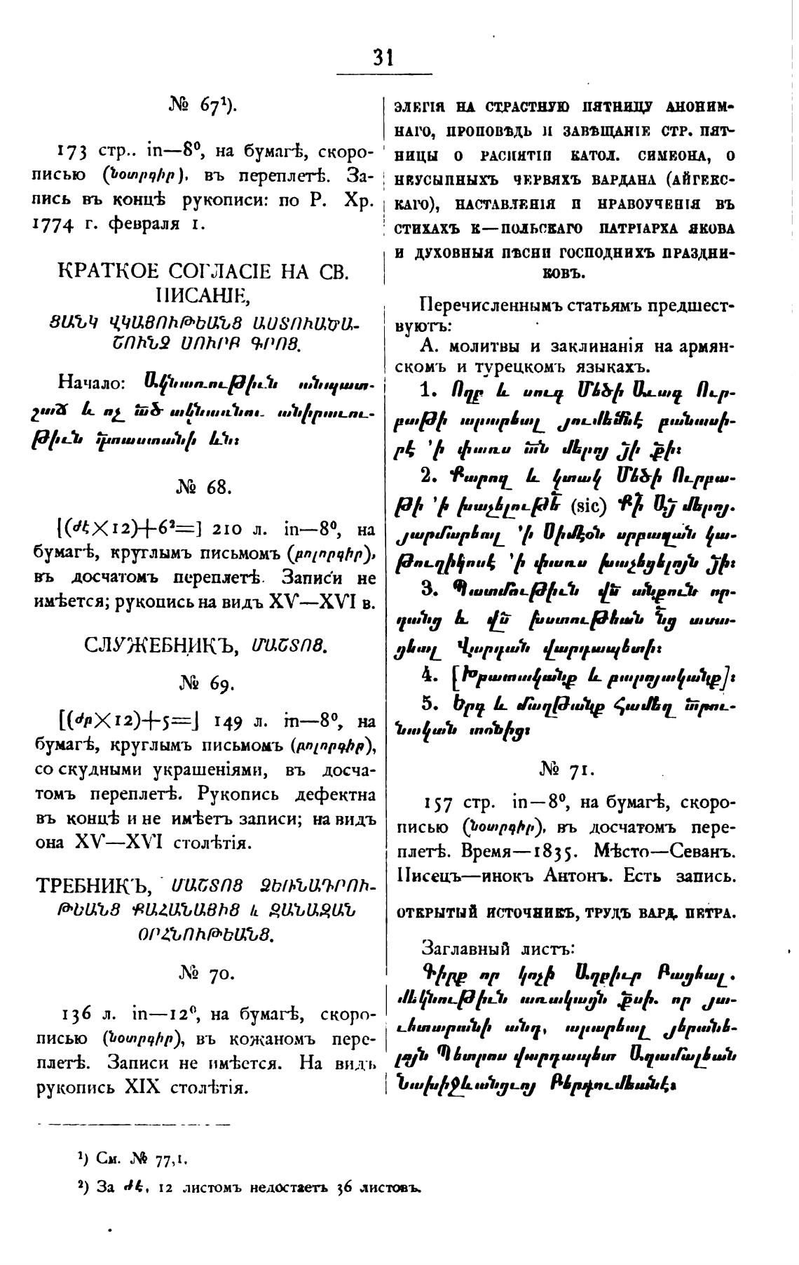 А. молитвы и на армян-