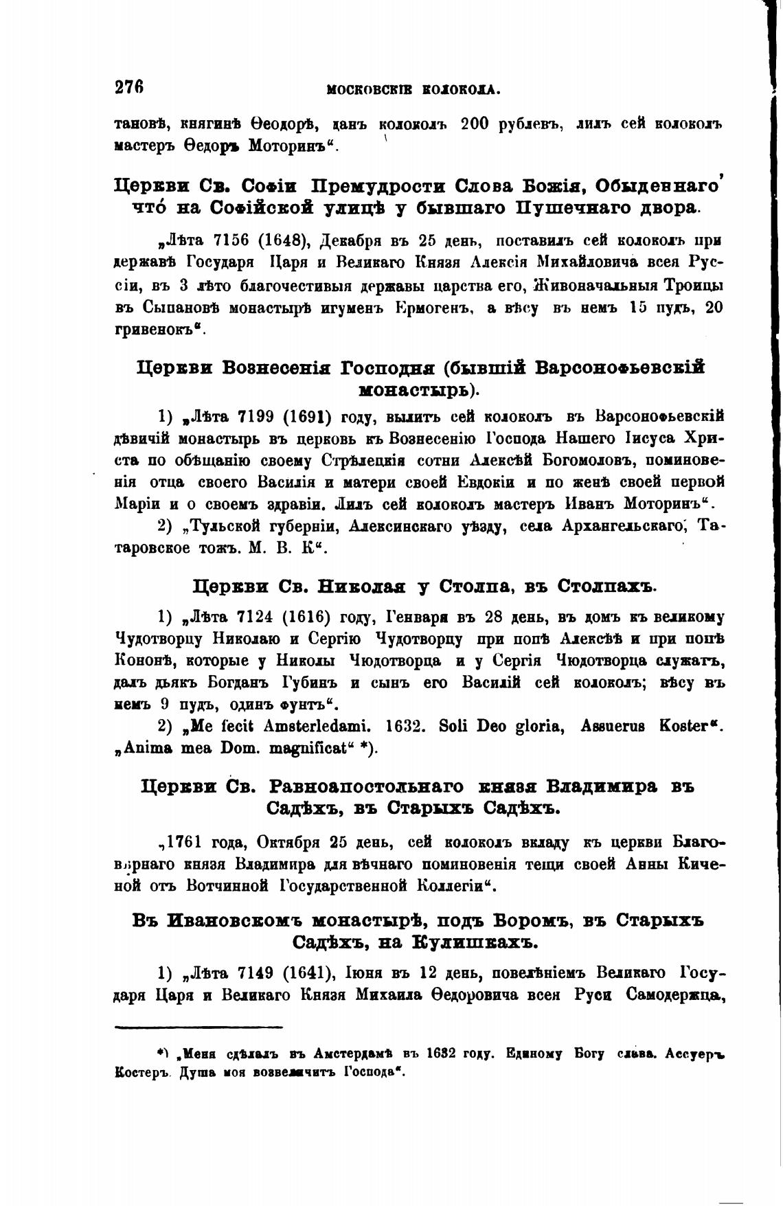 , 1761 года, Октября 25 день, сей колокодъ вклцу церкви Благо-