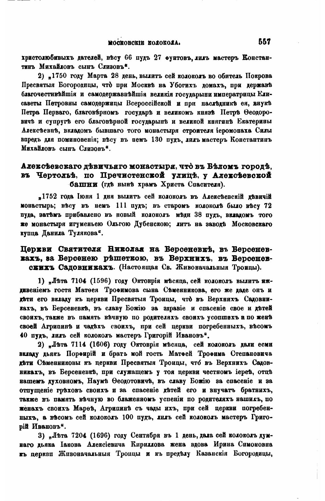 монастырь; вфсу въ нень lll пудъ; въ старомъ колокол было ybcy 72