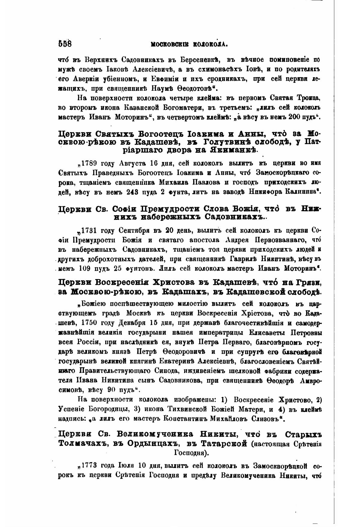 „ 1773 года Люля 10 дня, вьиить сен колоколь въ Замосквор•вцкоИ со-
