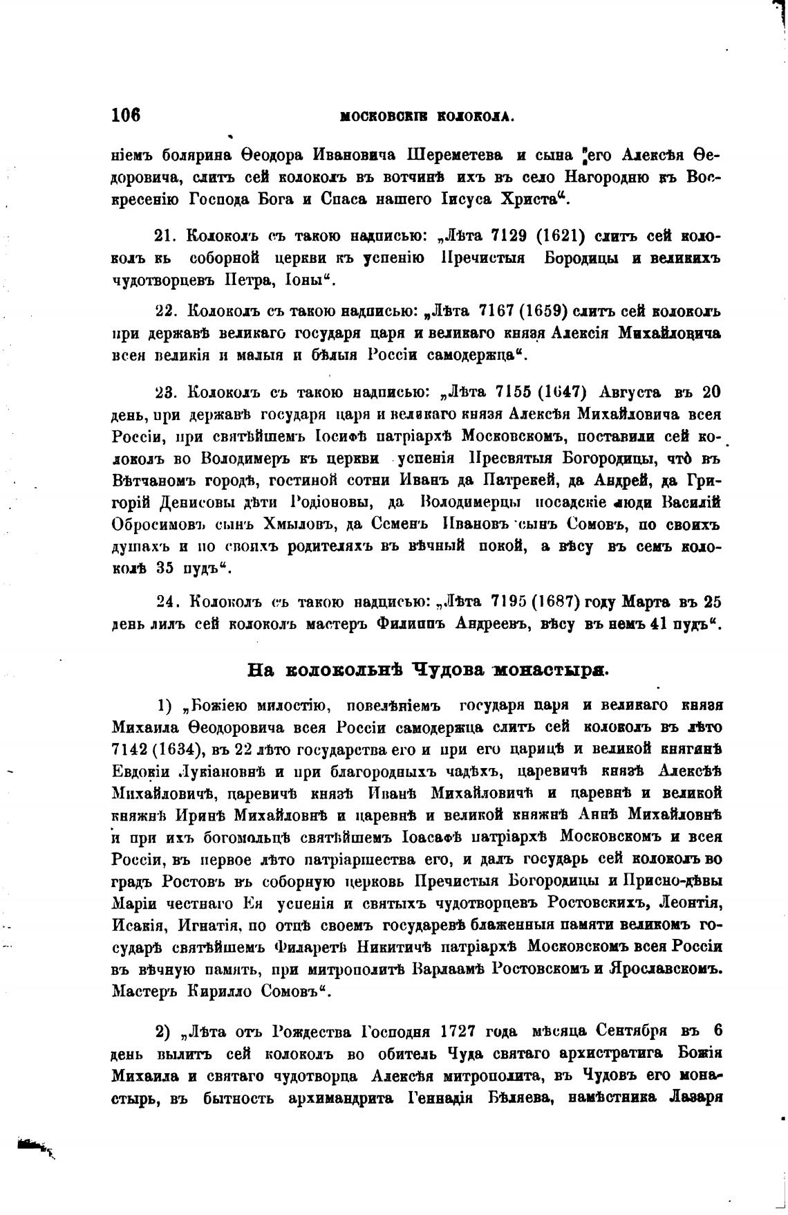 24. Колоколь съ такою надцисью: „Л•Ьта 7195 (1687) году Марта въ 25
