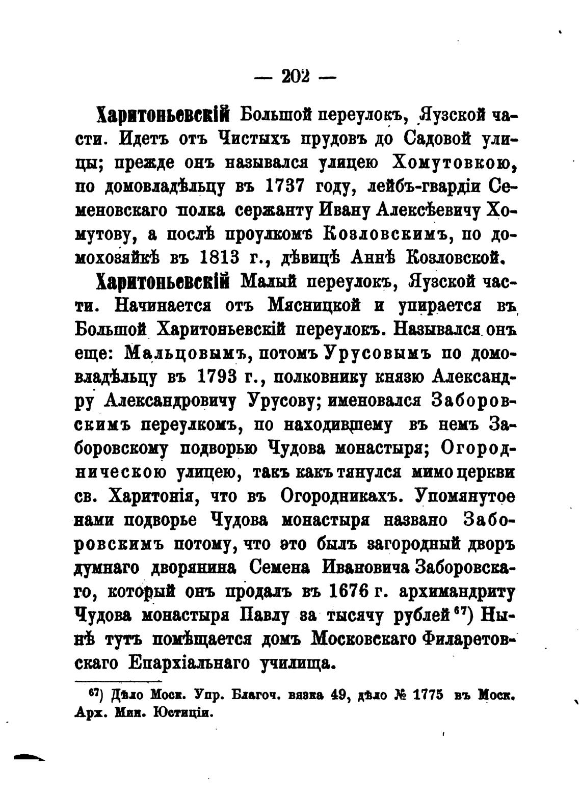 Харитоньовск\й Большой переулокъ, Яузской ча-