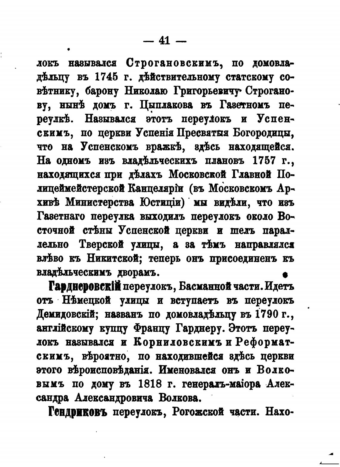 переулокъ , Басманной части. Идетъ