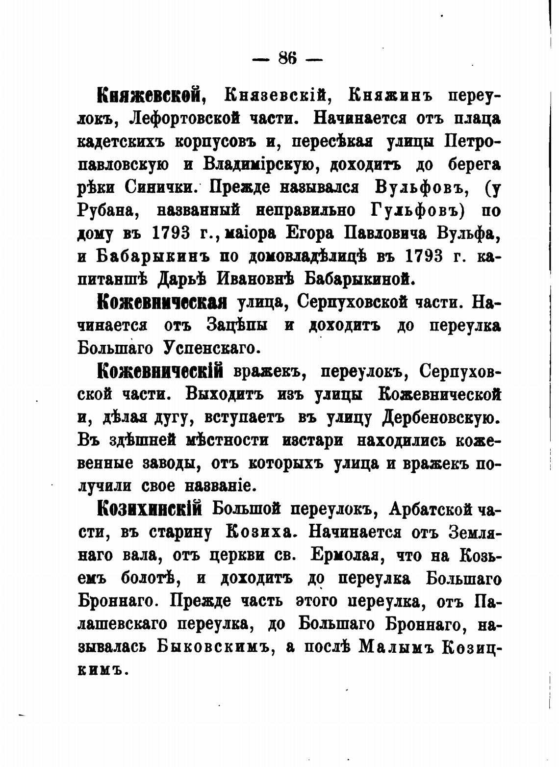 ской части. Выходить изъ улицы Кожевнической