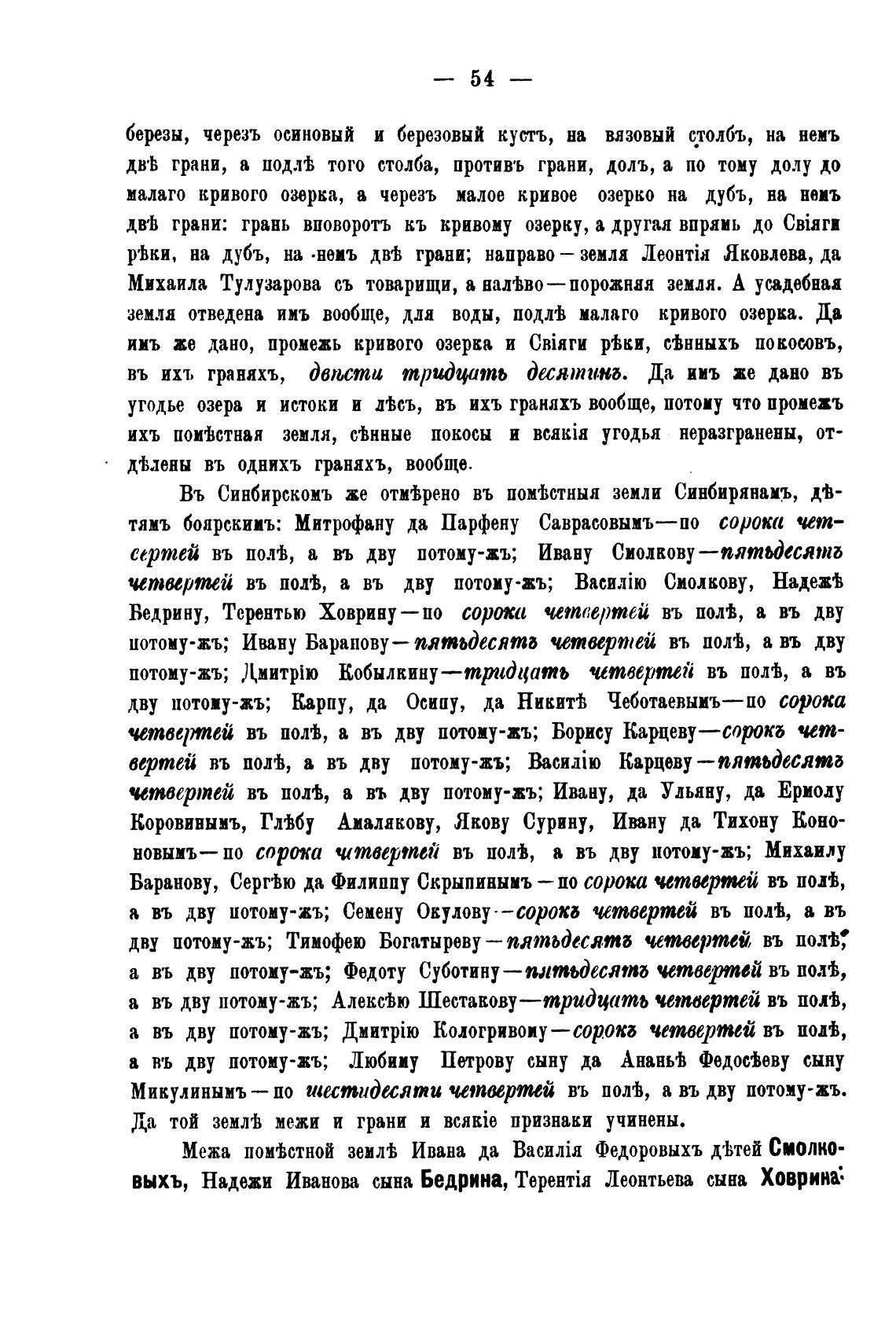 Въ Синбирскомъ же отмЈрено въ помјстныя земли Синбирянамъ, дев-