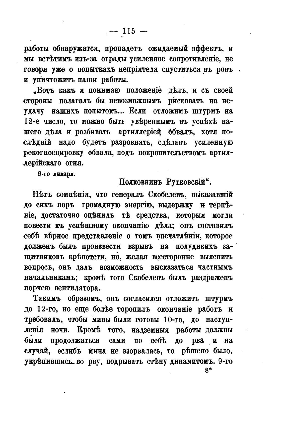 увргЬпившись- во рву, подрывать стЬну динамитомъ. 9-го