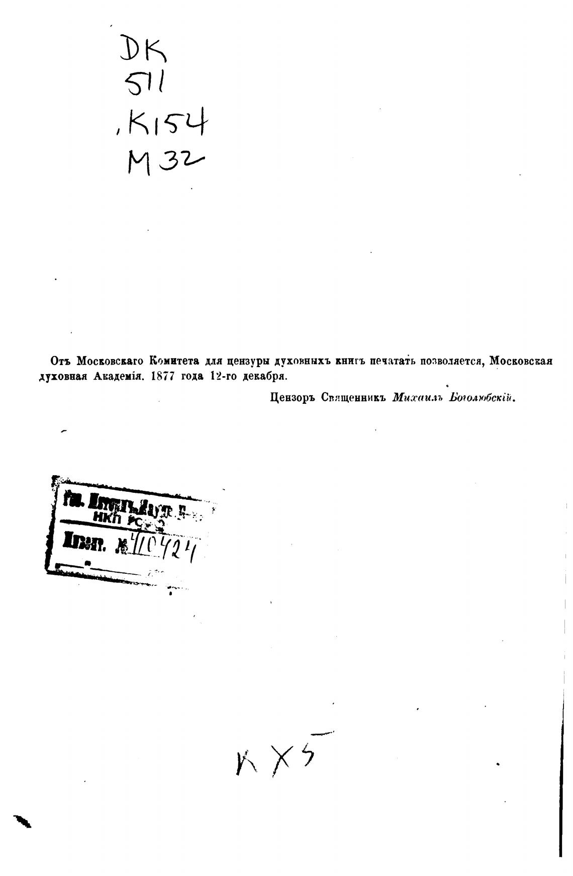 Цензоръ Спященникъ Ми.таилћ Боголюбскй.
