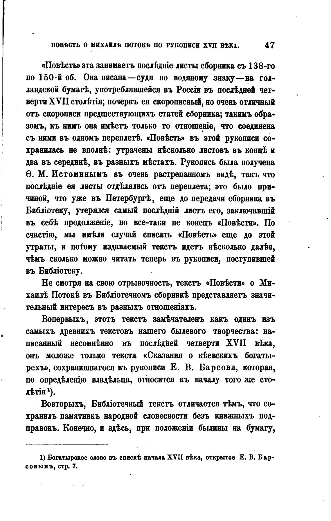 1) Богатырское слово въ начала XVII в•Ька, открытое Е. В. Бар-