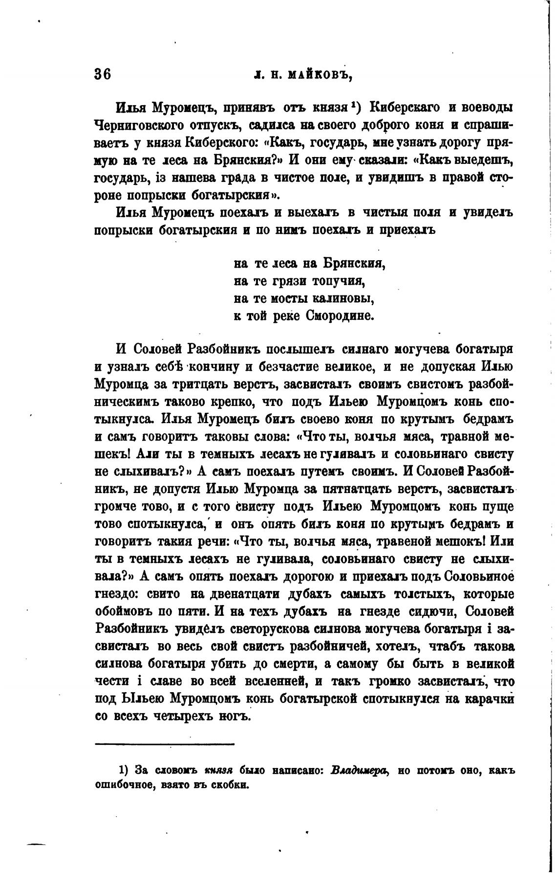 под Ыљею Муромцомъ конь богатырской спотыкнулся на карачкй