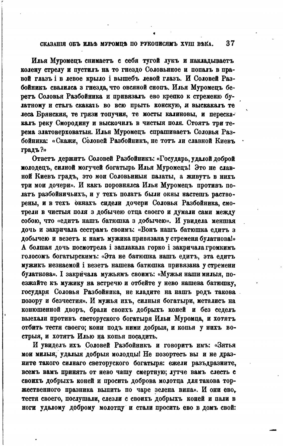И увидиъ ихъ Соловей Разбойникъ и говорить имъ: «Зятья