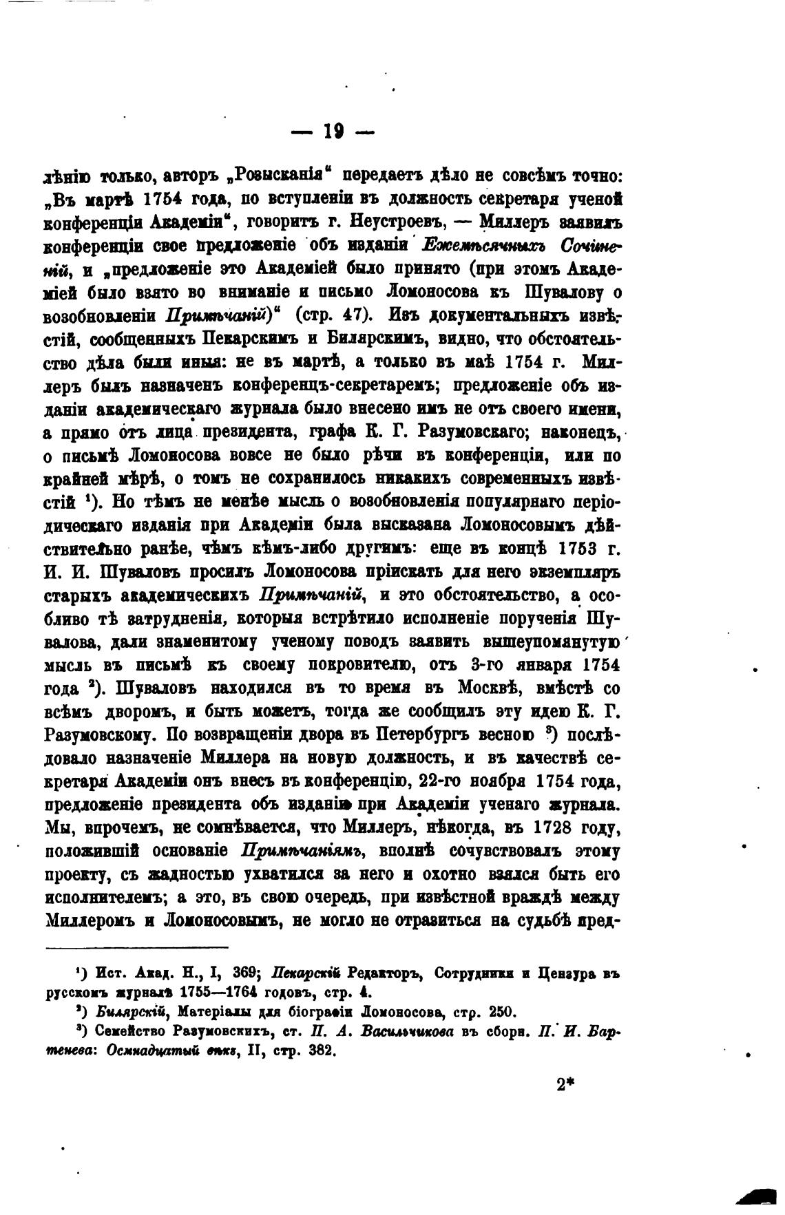 „Въ марв 1754 года, по въ должность севретара ученой
