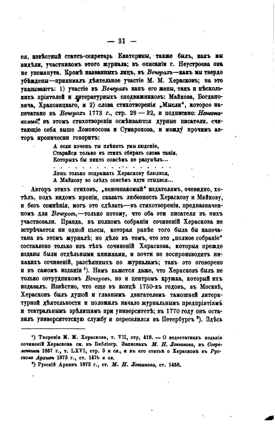 1) TB0FBia М. М. Херасвова, т. VII, стр: 418. — О недостатпхъ