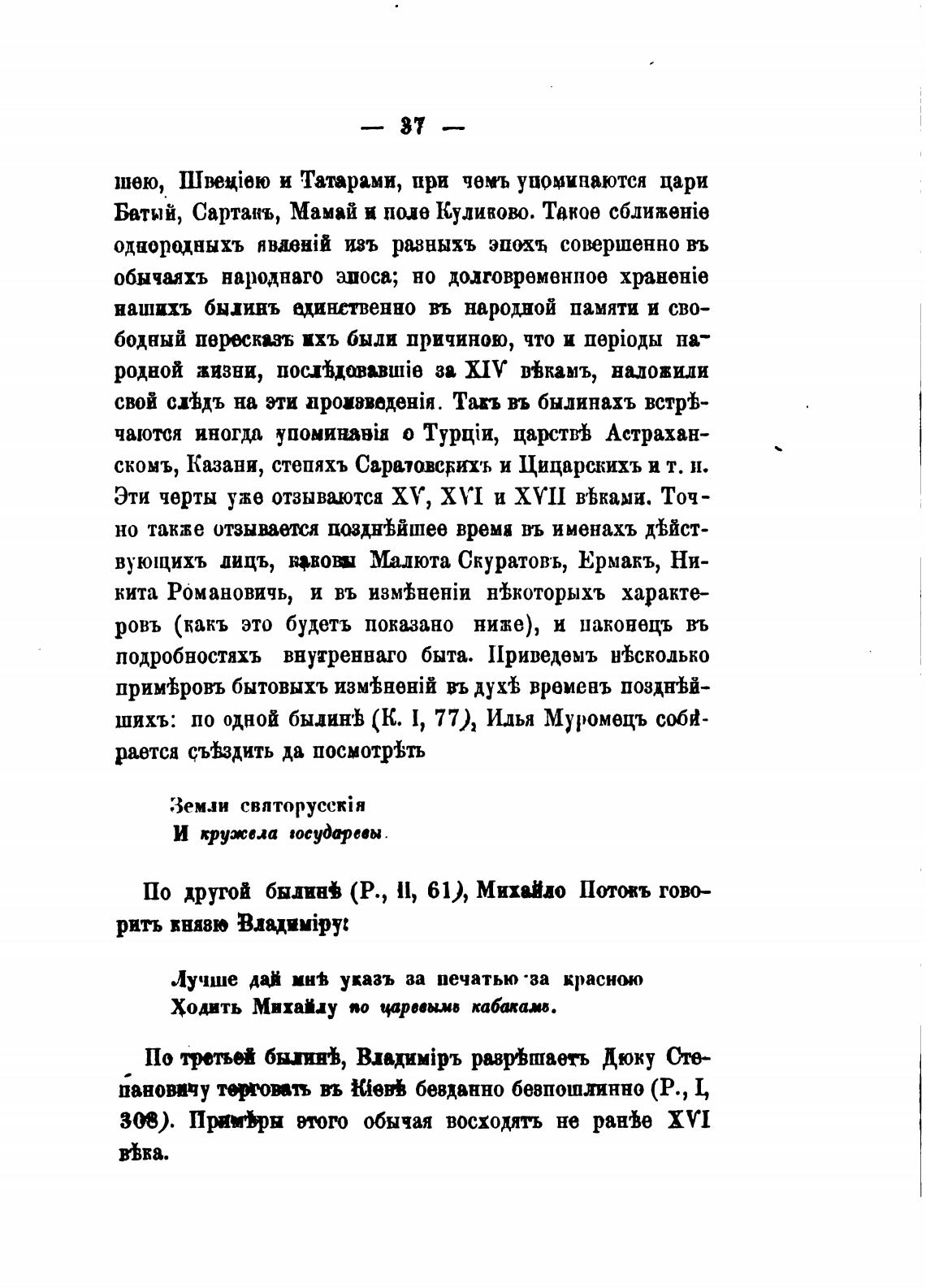 шихъ: по одной быдин•Ь (К. 1, 77), Иды Муромецъ собй-