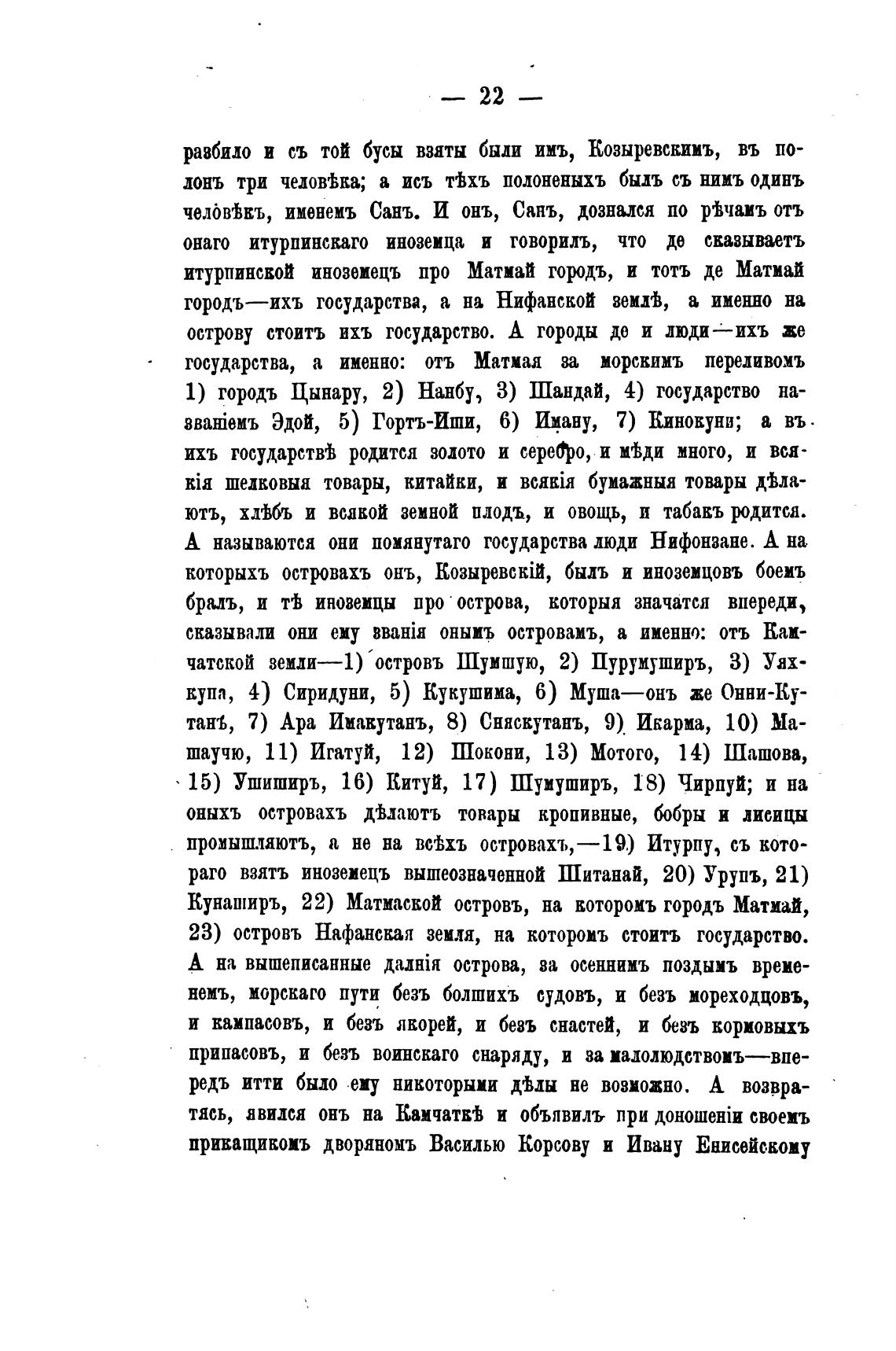 которыхъ островахъ онъ, КозыревскШ, быль и иноземцовъ боемъ