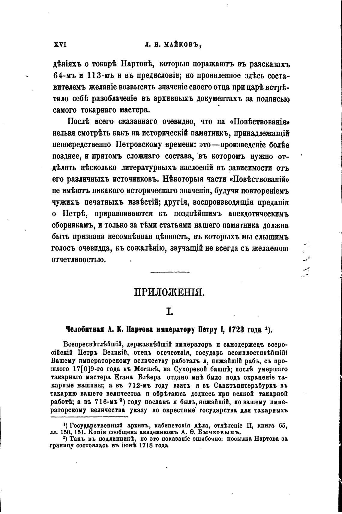 Челобитная А. К. Нартова императору Ветру 1, 1723 года 1).