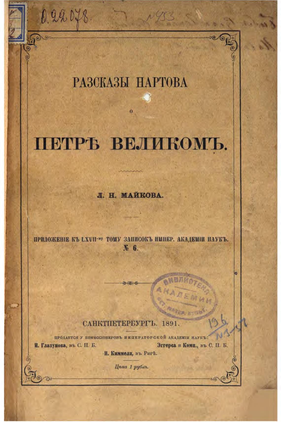 ПРОДАЕТСЯ У комисс:онкровъ имшврлторской АКАДЕМЈИ НАУКЪ: