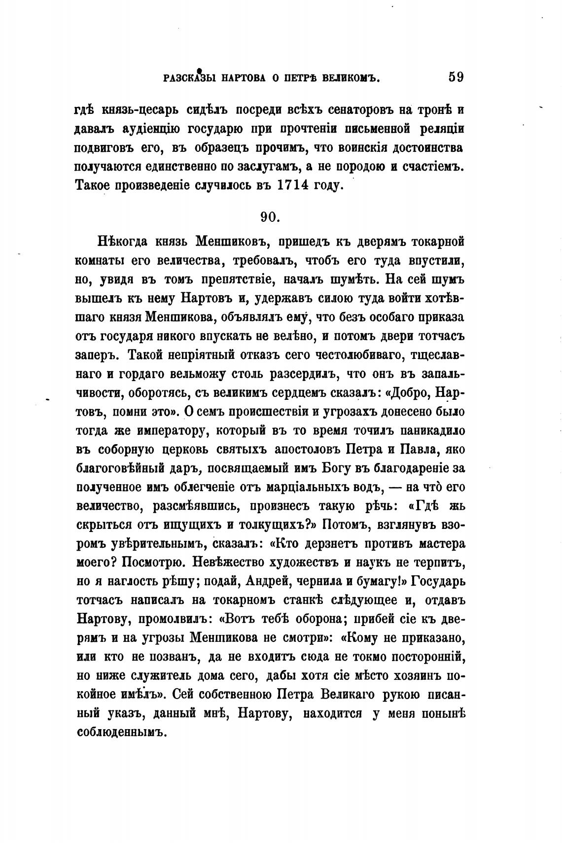 Н'Ькогда князь Меншиковъ, пришедъ кь дверямъ токарной