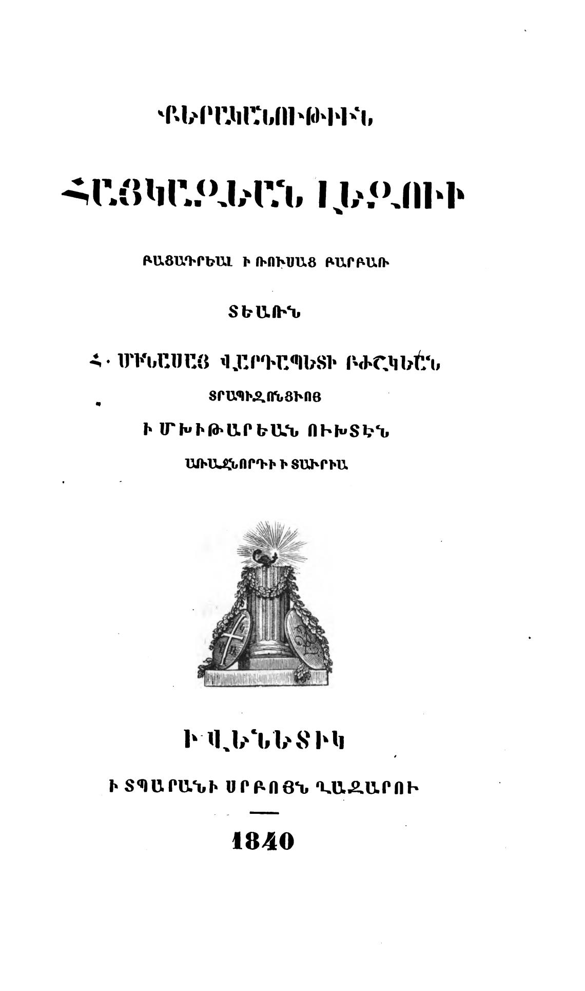 Армяно-русская грамматика. - Медици М.