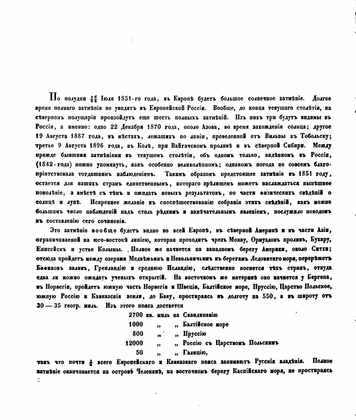 Полп 1851-го года, въ Европ•в будеть б(иьшое солаечаое aaTMtBie. Долгое