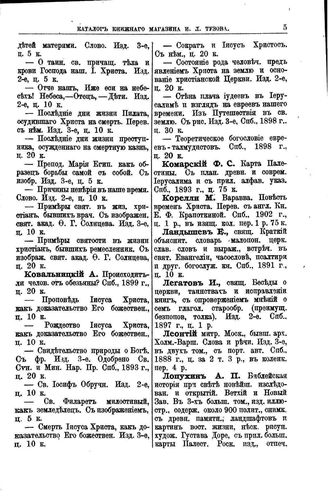 КАТАЛОГЬ КНИЖНАГО МАГАЗИНА И. Л. ТУЗОВА.