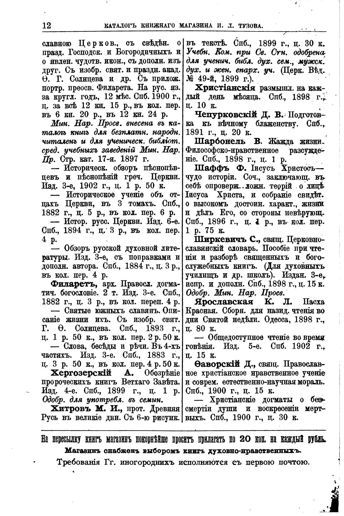 КАТАЛОГЪ КНИЖКАГО МАГАЗИНА И. Л. ТУЗОВА.