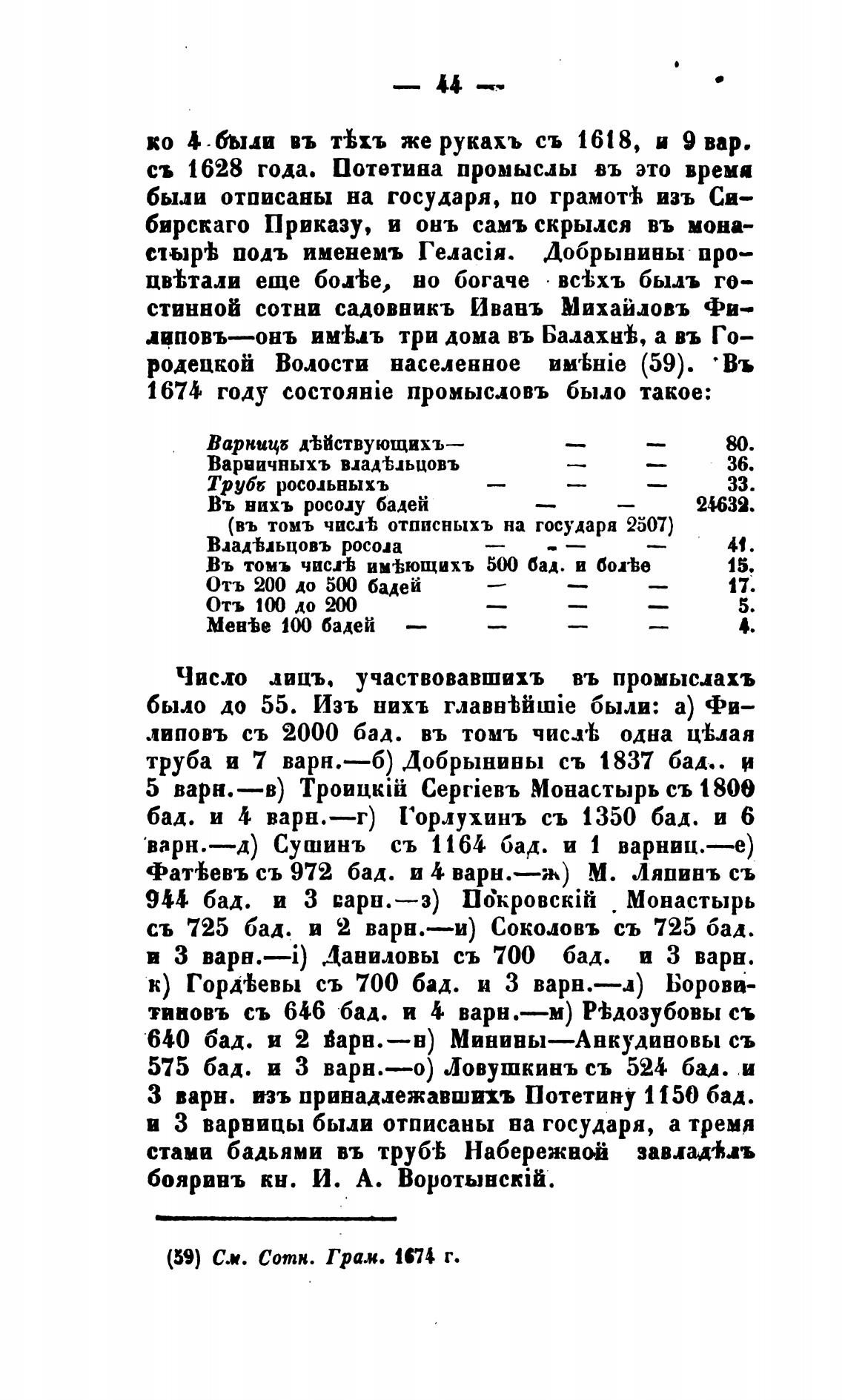 1674 году проиысловъ было такое: