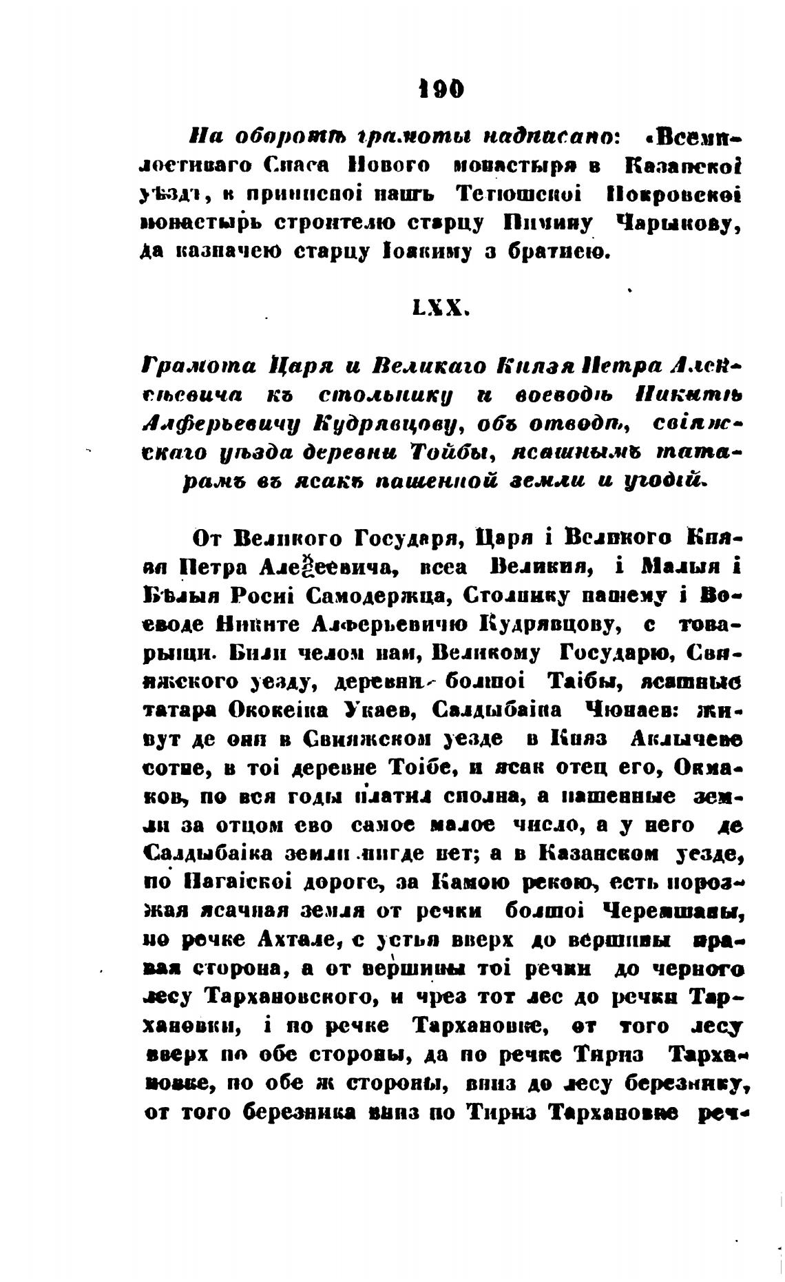 псу Тархановсного, и чрез тот лес до речки Тар—