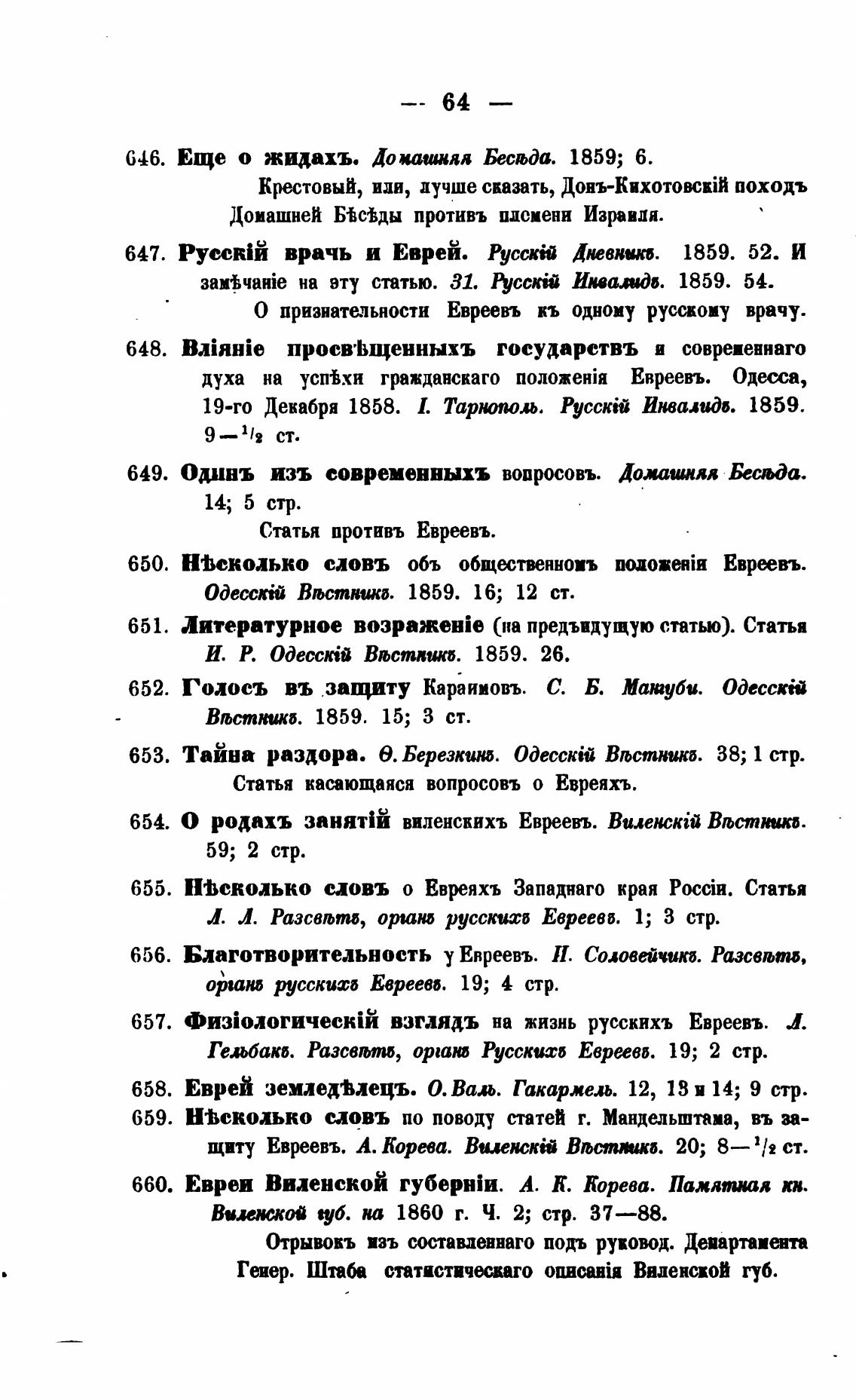 647. врачь и Еврей. Русс“ Дневнвп. 1859. 52. И