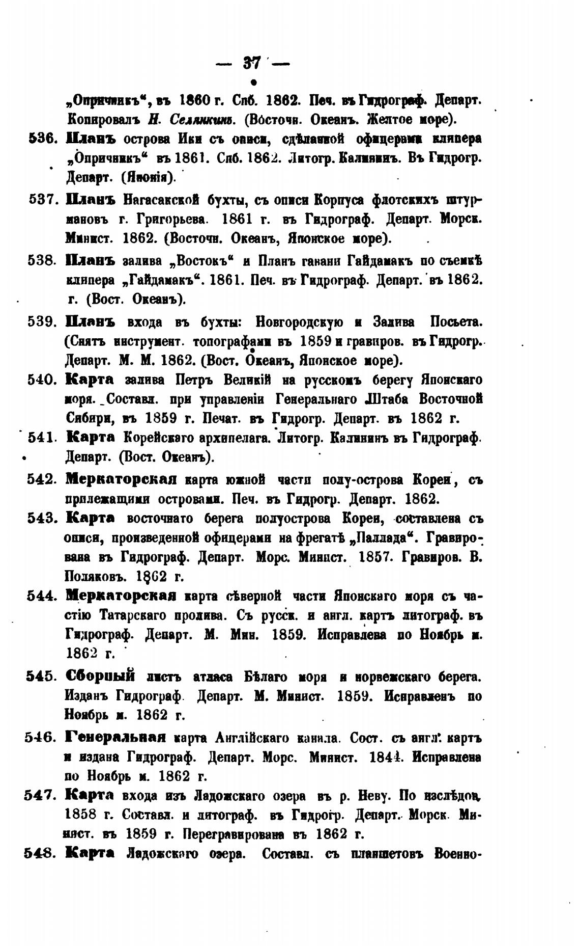 прилежащими остроип. Печ. въ Гидрогр. Департ. 1862.
