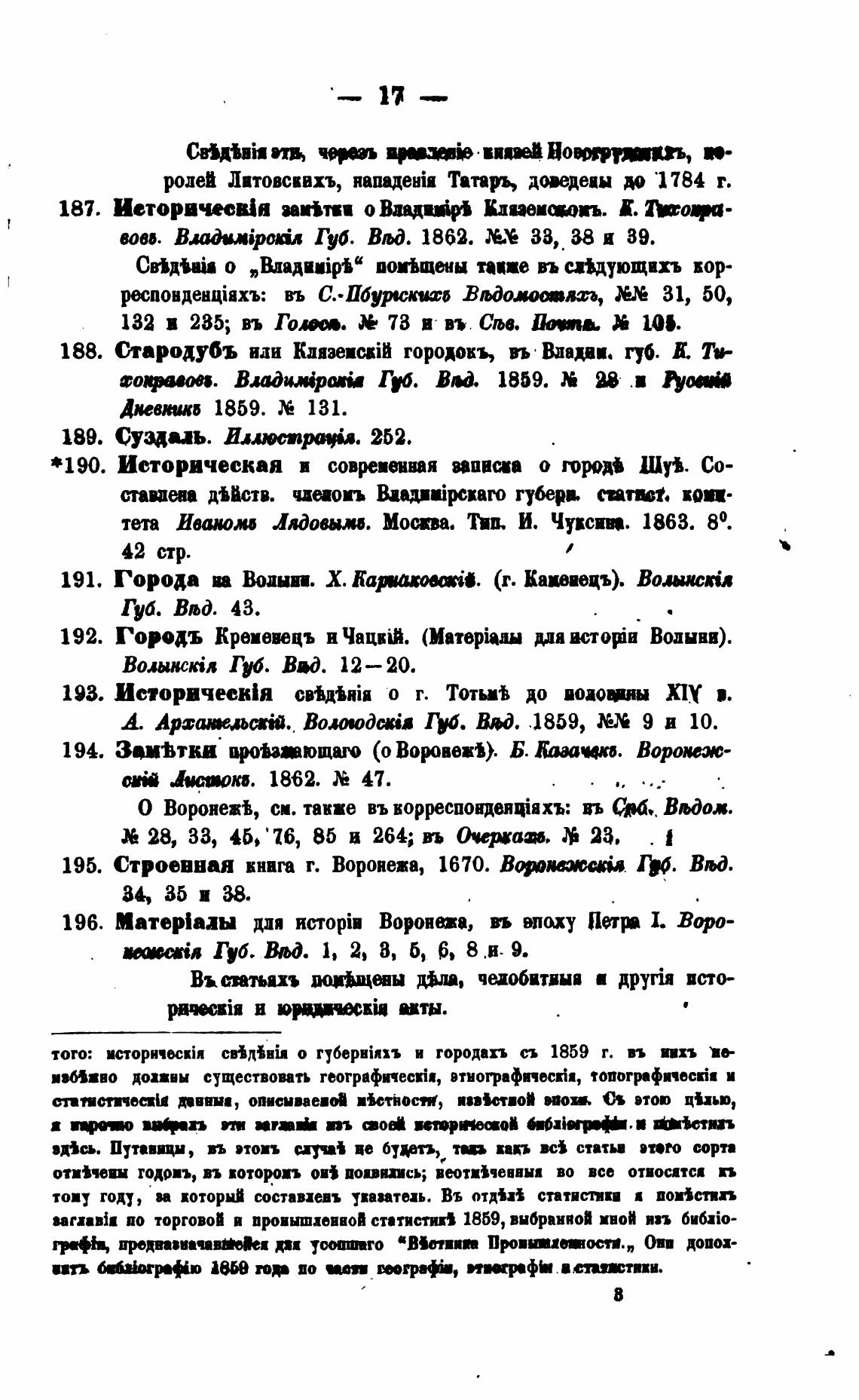 О ВоронежЬ см. также въ корреспондеяјяхъ: въ фб,. Втдол.