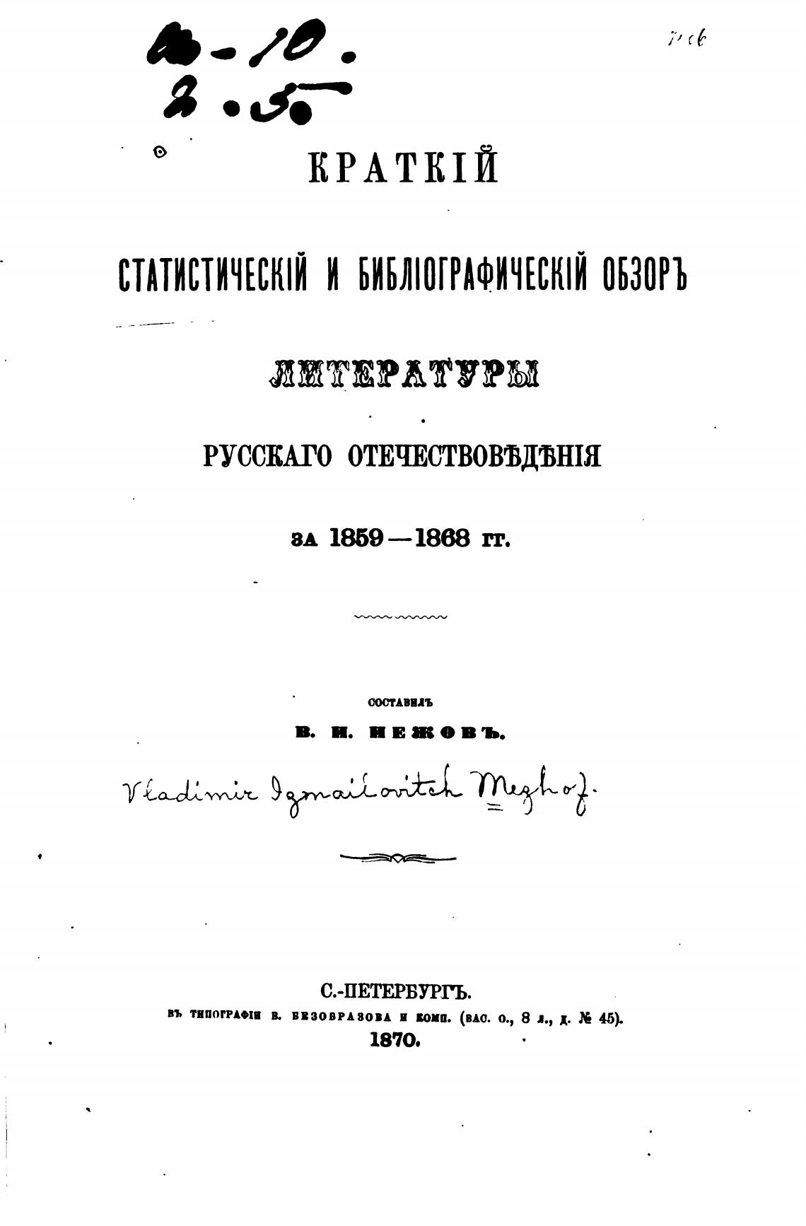 СТАТИСТИЧЕСЮИ И БИБЛОГРАФИЧЕСЮИ ОБЗОРЪ