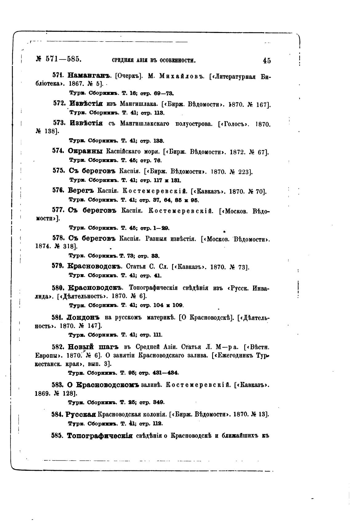579. Красноводсвъ. Статьа С. Сл. [«Кавказъ». 1870. 73].