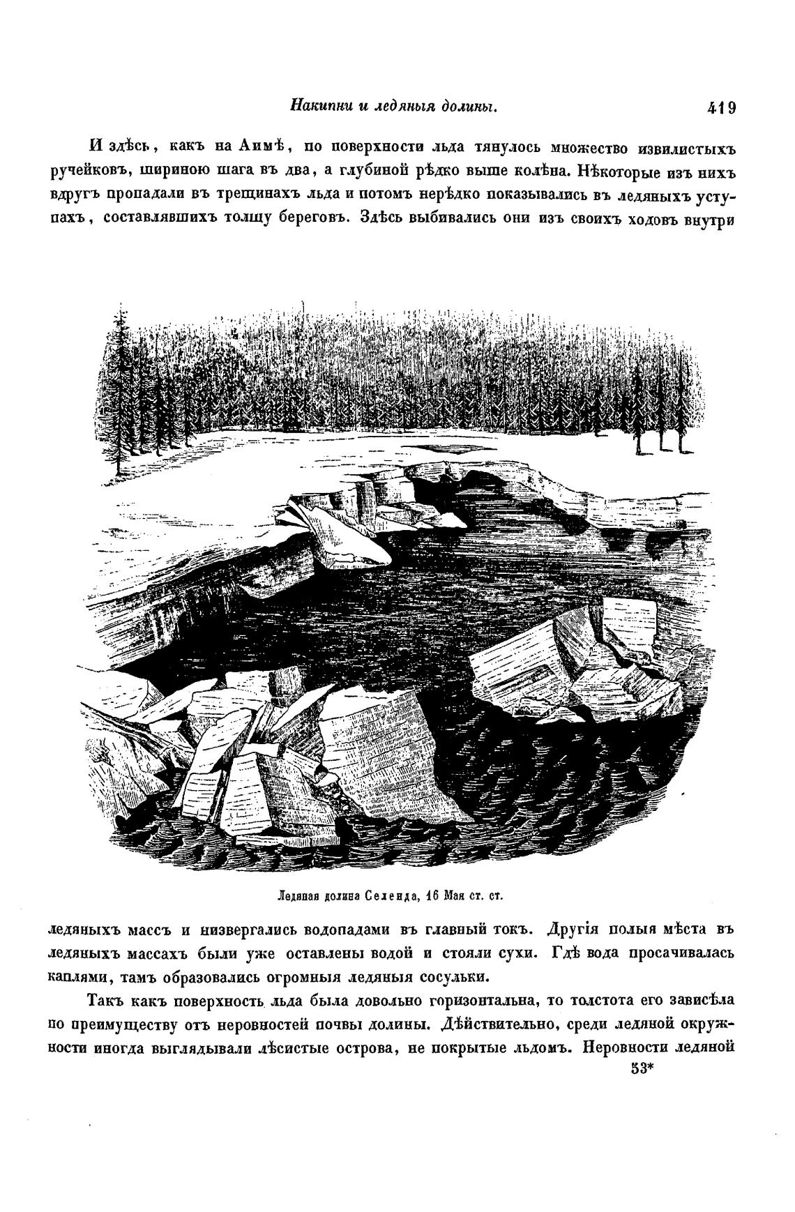 И зд%сь, какъ на АимгВ, по поверхности льда тянулось множество извилистыхъ