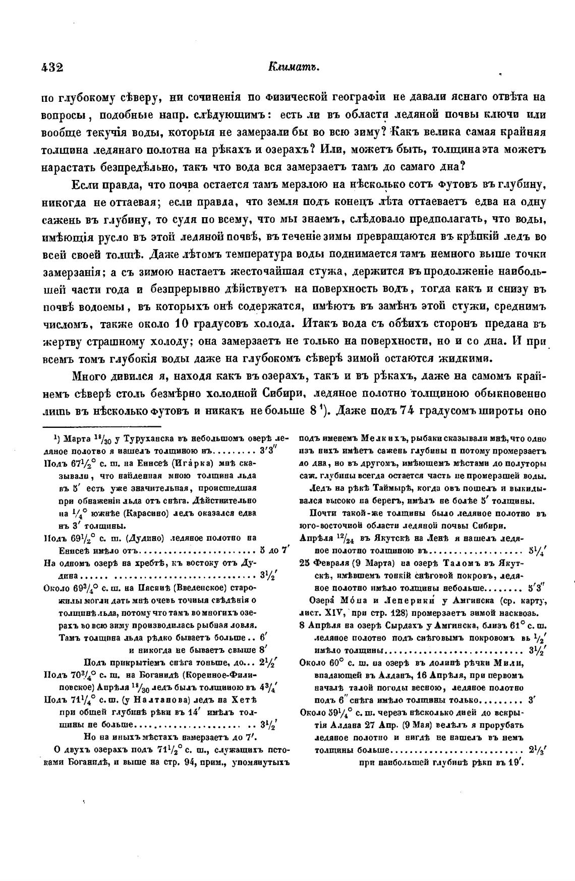 лишь въ н±сколько Футовъ и никакъ не больше 8 О. Даже подъ 74 градусомъ широты оно
