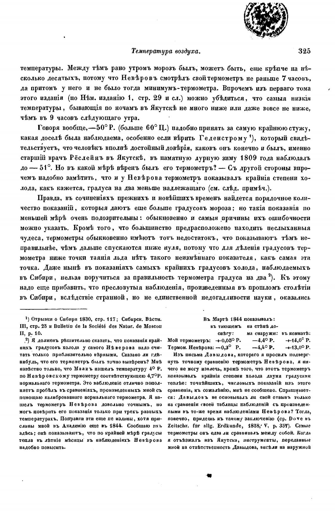 да притомъ у него и не было тогда минимумъ-термометра. Впрочемъ изъ перваго тома