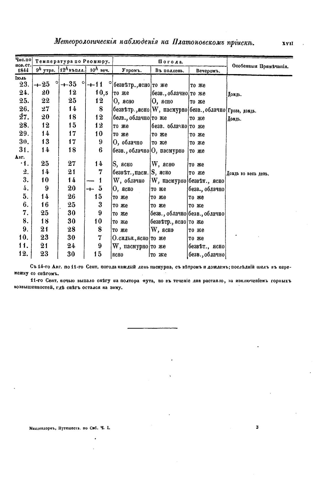 Съ 14-го Авг. по 11-го Сент. погода каждый деаь пасмурна, съ в•Ьтромъ й дождемъ; nocaMBii шель въ пере-