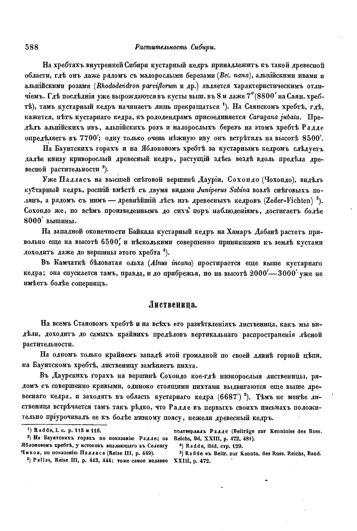 В), тамъ кустарный кедръ начинаетъ лишь прекращаться 1). На Саянскомъ хребт±, гдт1;,