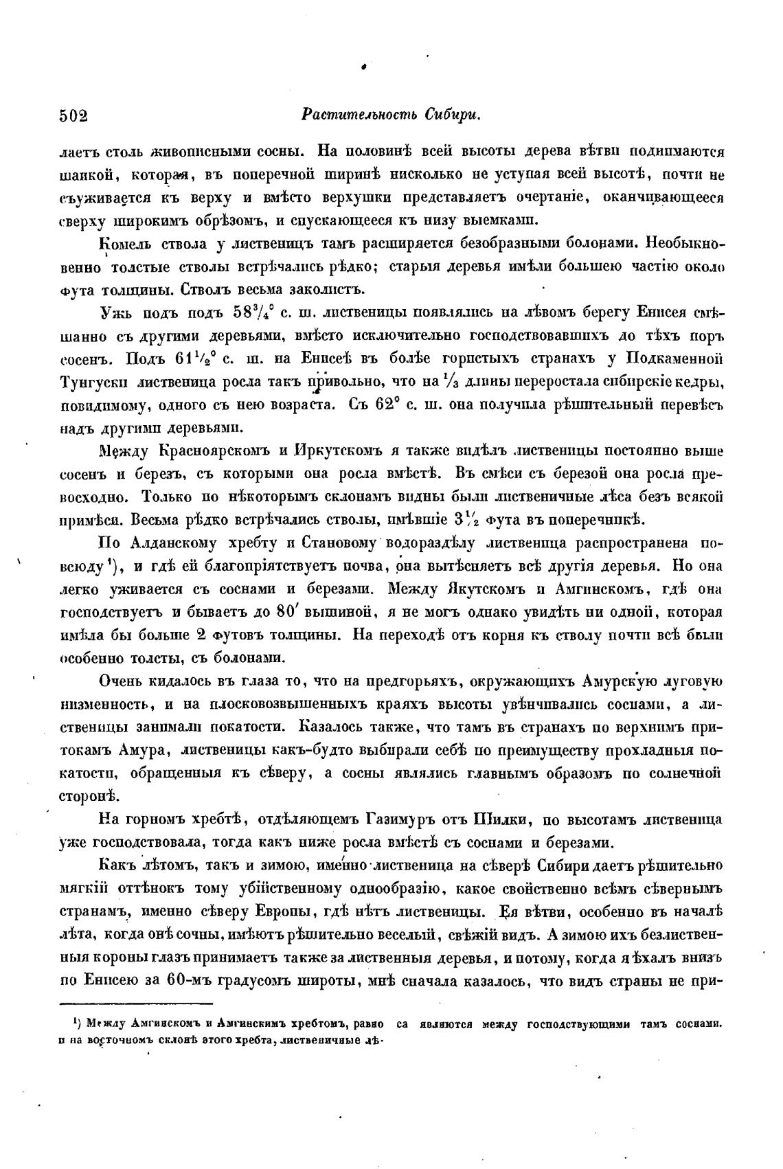 1) Между Амгинскомъ и Амгинскимъ хребтомъ, равно са яванются между господствующими тамъ соснами.