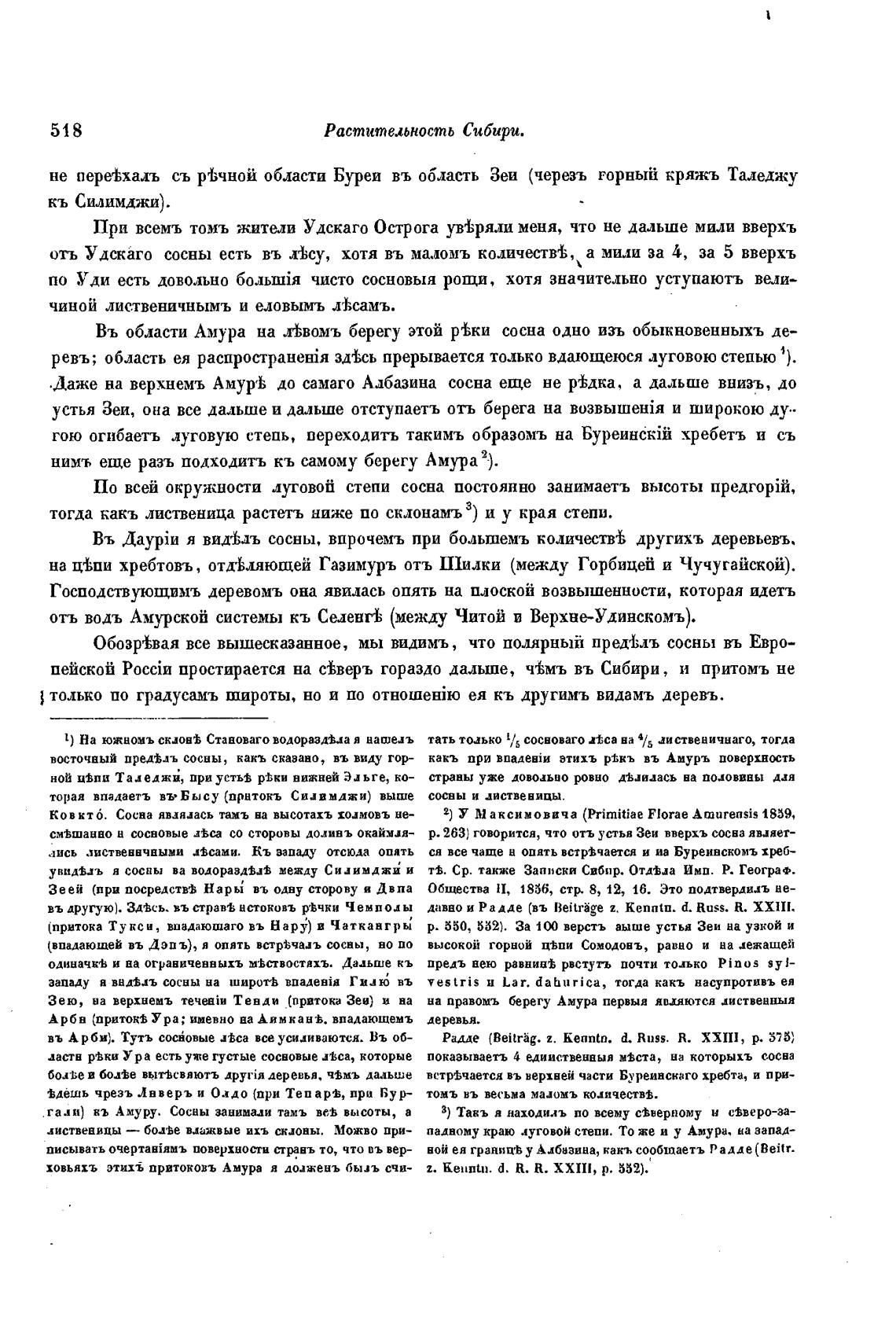 .Даже на верхнемъ Амурь до самаго Адбазина сосна еще не ртдка, а дальше внизъ, до