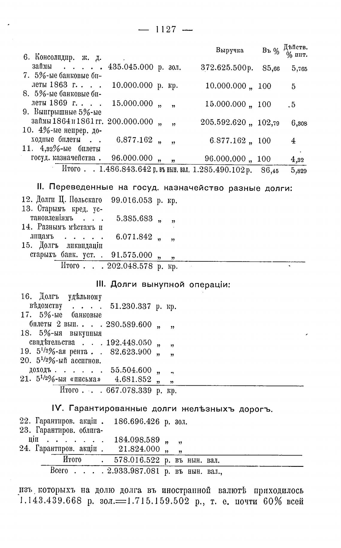 изъ которыхъ на долю долга въ иностранной валютЬ приходилось