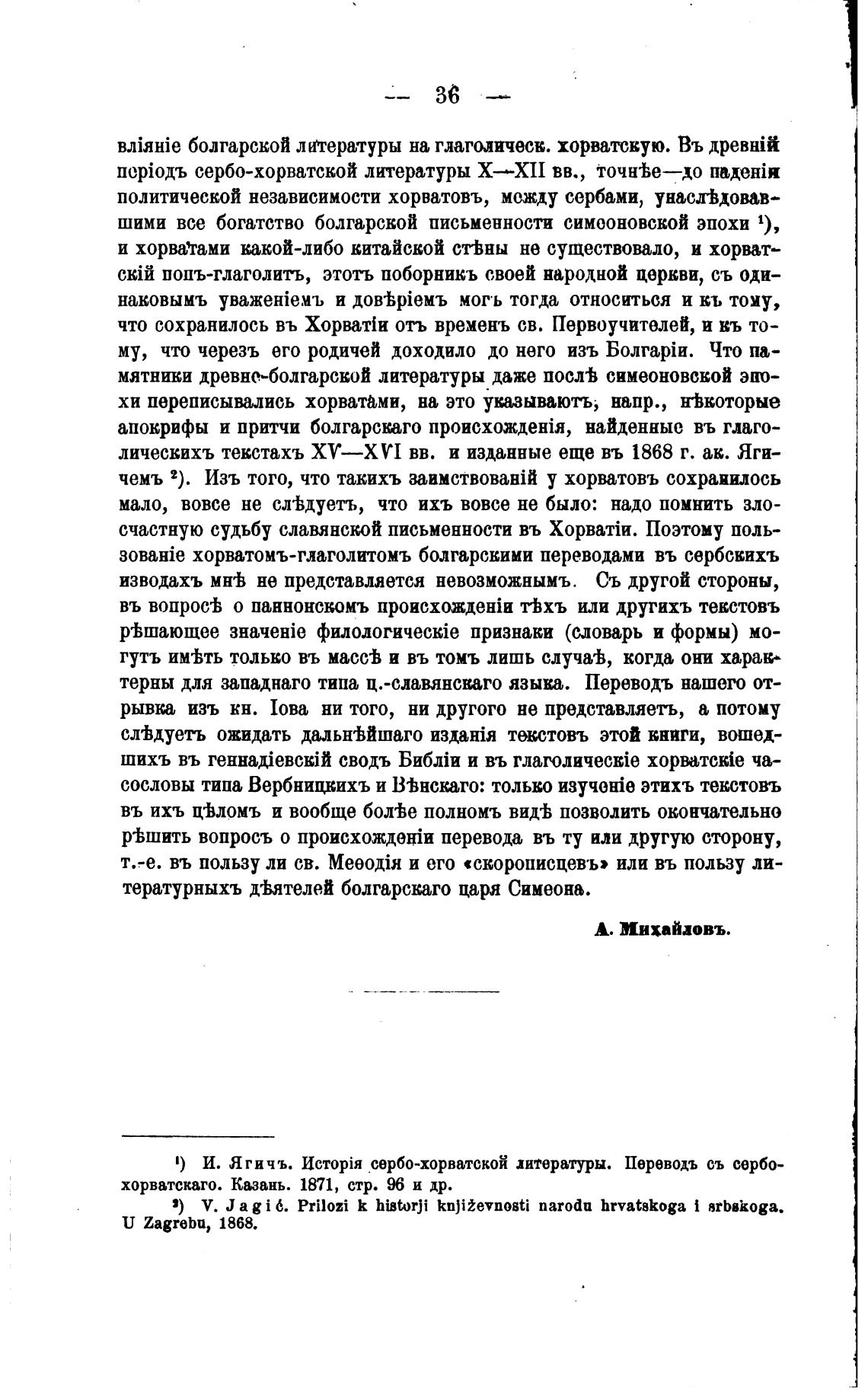 болгарской литературы на глаголическ. хорватскую. Въ