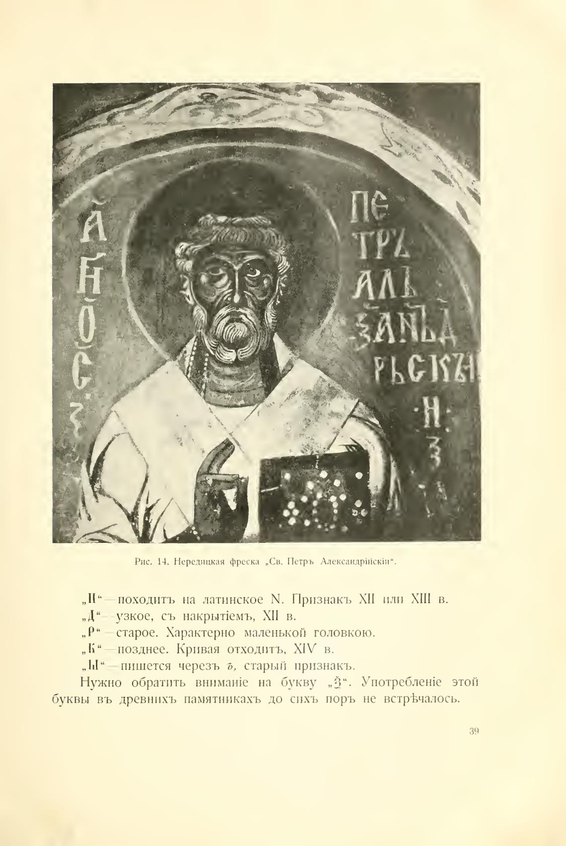 Рис. 14. Нерелицкая фреска „Св. Петрь Александрпјскли".