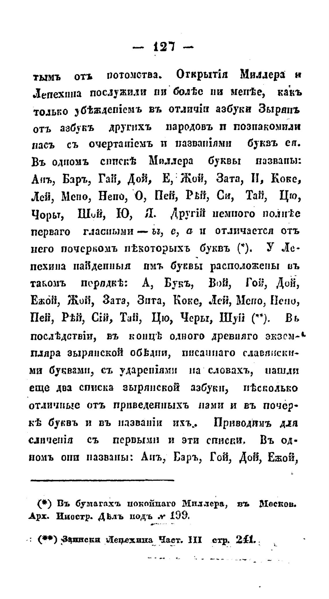 Въ одио.мъ сппск'Ь Миллера буквы названы: