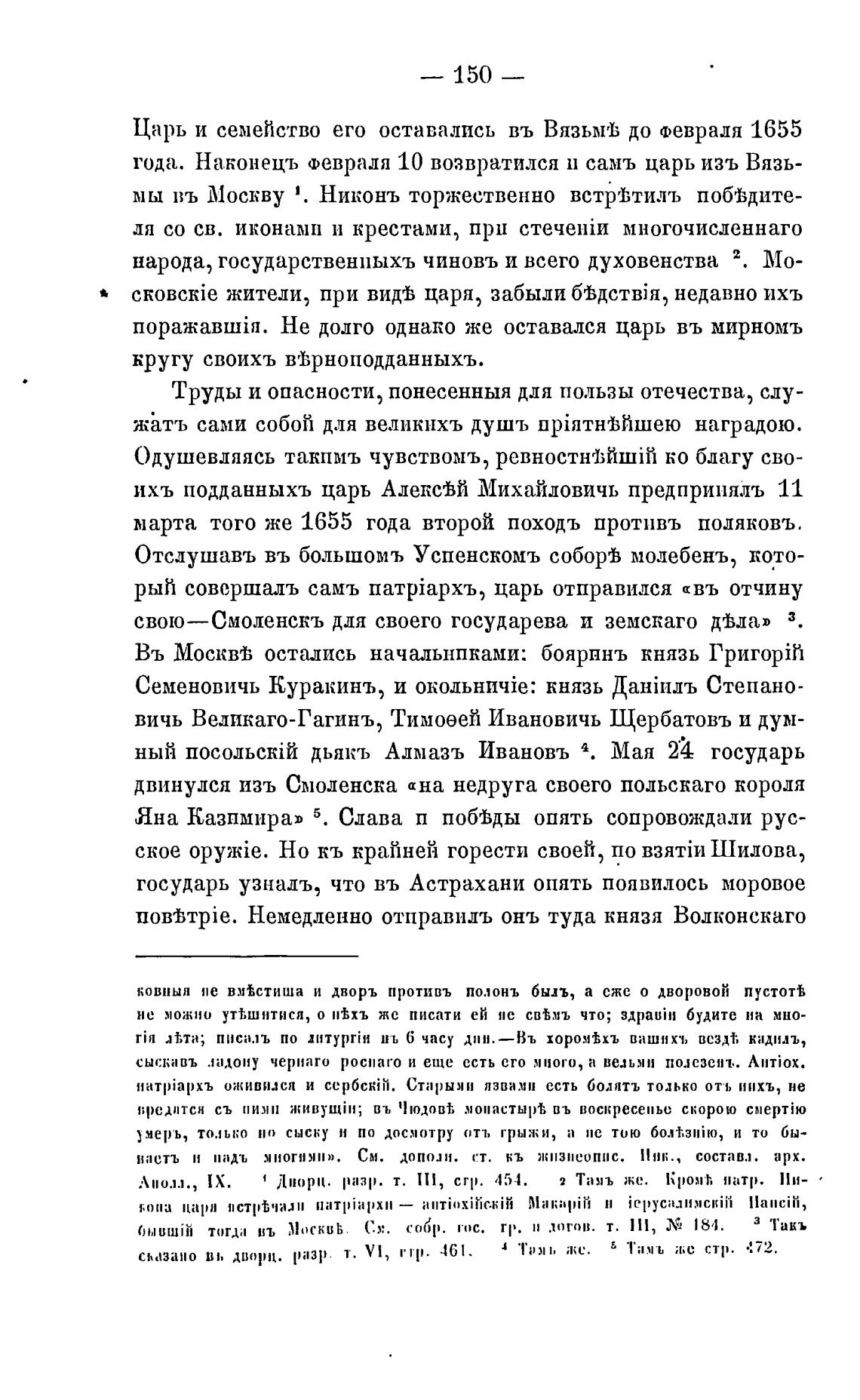 Царь и семейство его оставались въ ВязьмгЬ до Февраля 1655