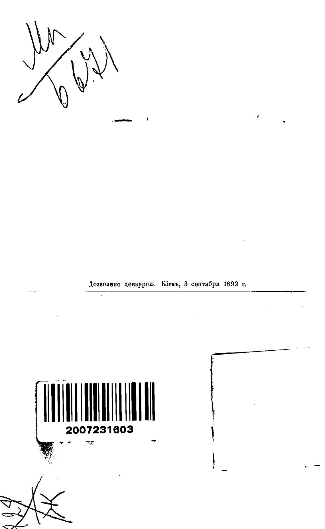Дозволено цензурою. kieBb, З сентября 1892 г.