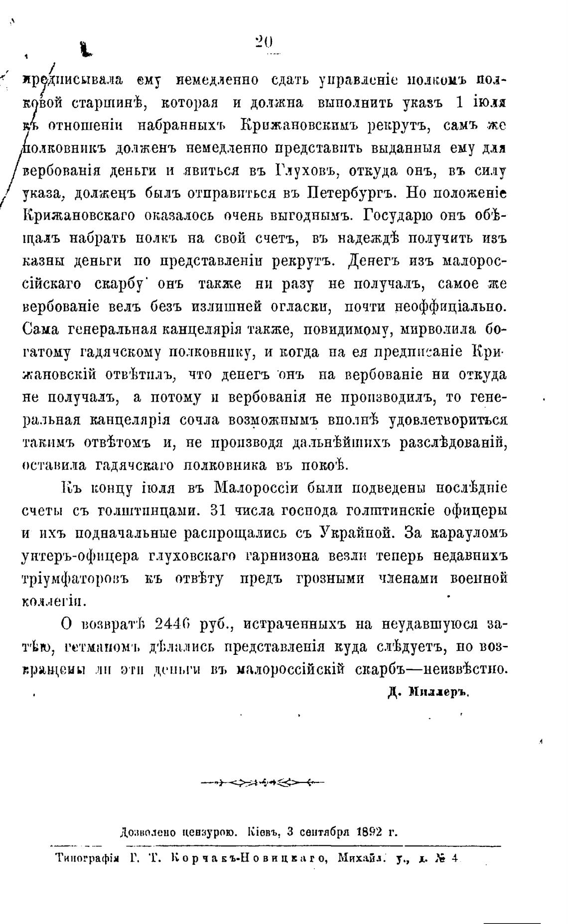 Дозволено цензурою. kiBRb, З сентябрл 1892 т.