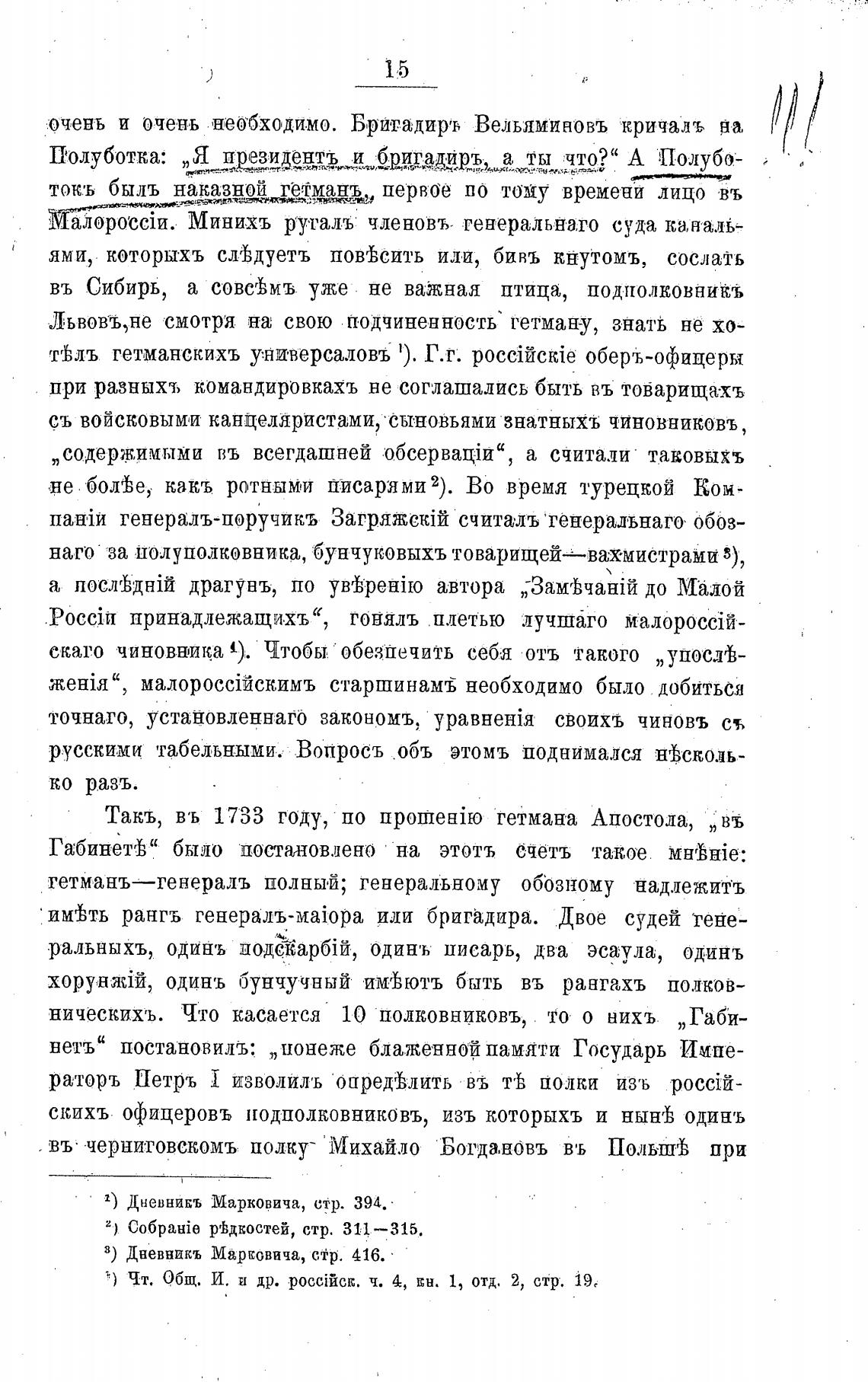 Такъ, въ 1733 году, • по гетмана Апостола, „въ